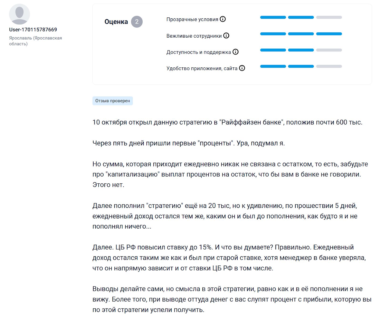 Отзывы клиентов об Уверенном доходе Райффайзенбанка негативные. Как пишут инвесторы, вклад имеет несколько подводных камней: