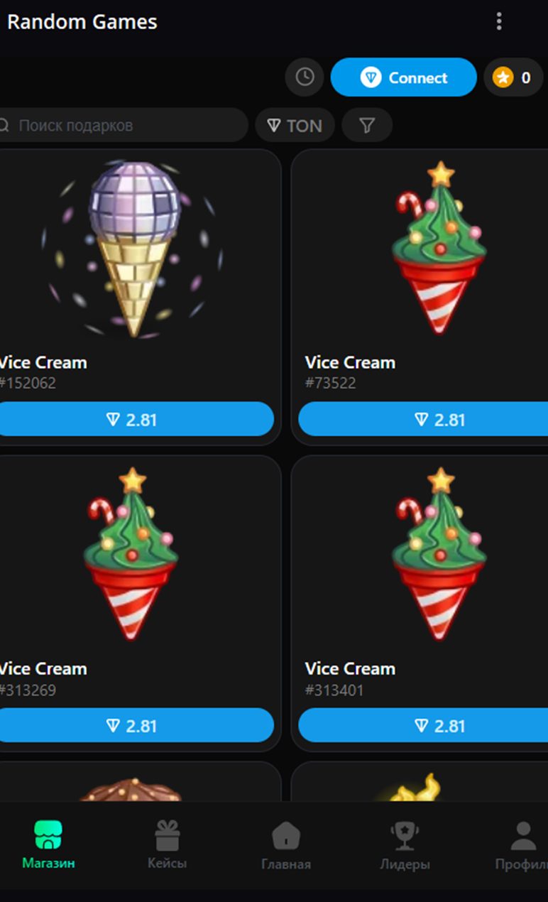 - используемая валюта – TON или звезды (нужна привязка кошелька).