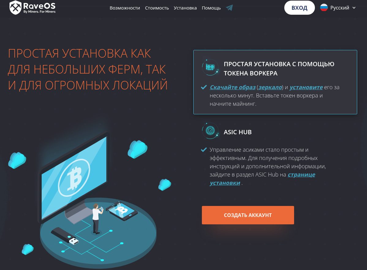 Операционная система RaveOS miner позиционируется как стабильная, надежная, минимизирующая энергопотребление. Поддерживает RaveOS майнинг с разного оборудования. Установка предельно простая — через токен воркера и образ системы.
