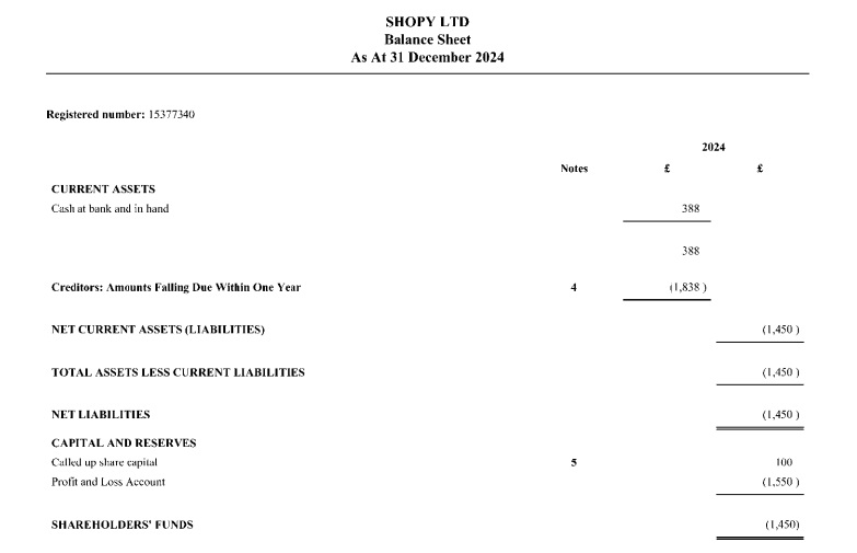 Со слов владельцев, их сервис принадлежит компании SHOPY LTD, которая зарегистрирована в Англии. Проверка по реестру подтверждает ее существование (дата регистрации 31 декабря 2023), но нет никаких доказательств связи с маркетом робуксов. Кроме того, это маленькая фирма с уставным капиталом 100£. По отчетам за 2024 год, на ее счетах 388£ и 1,8 тыс. долгов. Основатели проекта выбрали для своей легенды явно не ту “крышу”.