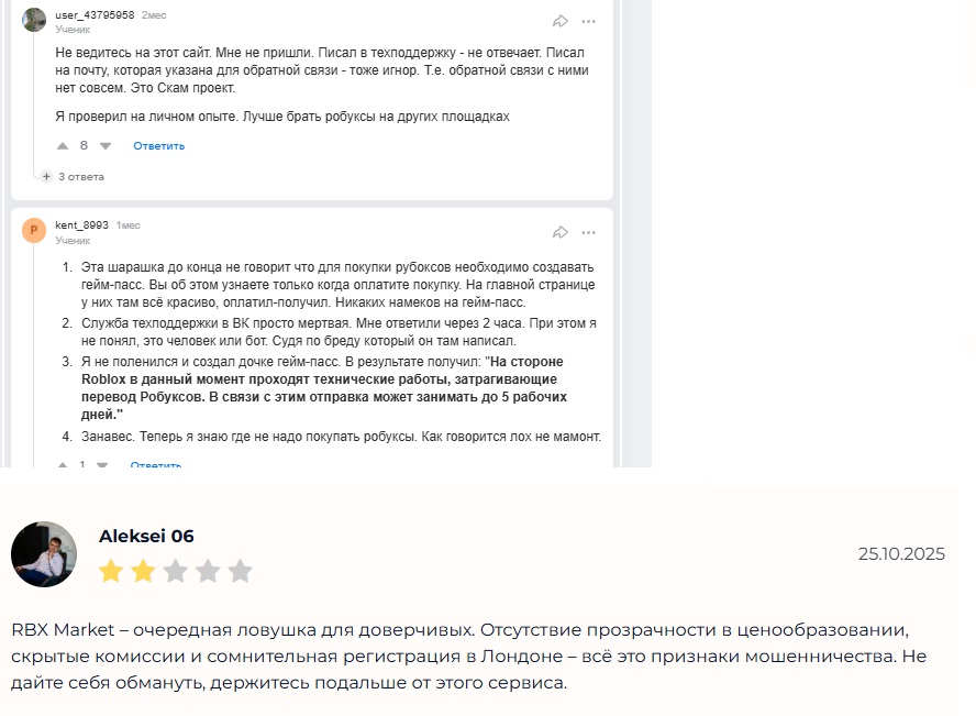 Положительные отзывы от “довольных клиентов” есть только на сайте rbx.market.