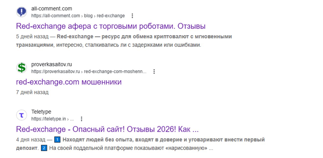 Отзывов на Red exchange com очень мало, но все мнения, которые удалось найти отрицательные. Их авторы делятся своими печальными историями сотрудничества с биржей.