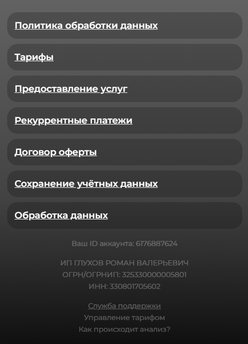 Самая важная страница — договоры и соглашения. Рекомендуется внимательно прочитать все документы. Интересно, что это все файлы Word. Причем, они сделаны на коленке. В тарифах перепутаны числа, даты, информация не обновлялась с 2024 года.