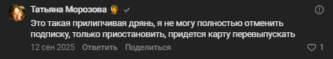 Пункт 2.3 показывает, что пользователь просто не может отписаться. Вместо этого платежи «приостанавливаются». Через 7 дней они возобновляются снова.