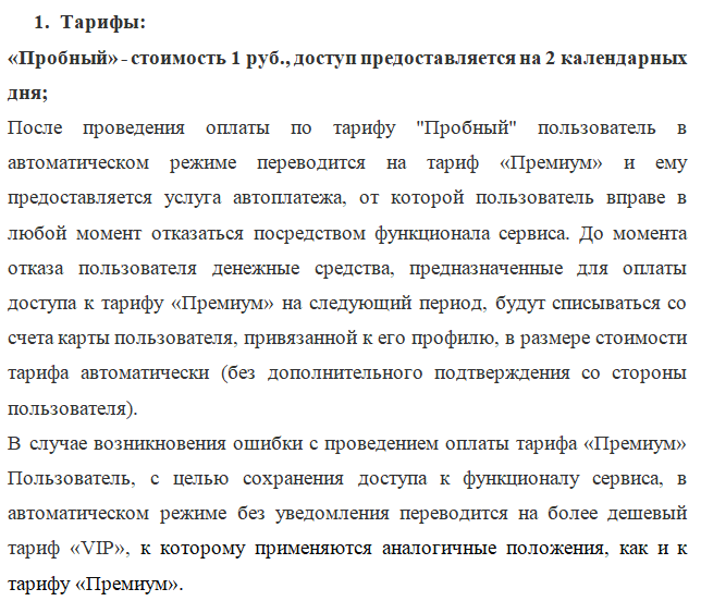 Создатель Телеграмм канала Ред Флаг решил поступить интереснее. Вот выдержка из пользовательского соглашения. Как только заканчивается тариф «Пробный», автоматически включается PREMIUM за 1 100 рублей за 10 дней. Если средств на карте не хватает, то подключат VIP за 350 рублей за 4 дня.