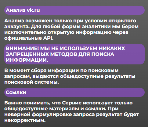 По кнопке «Как происходит анализ?» можно узнать интересную информацию. Оказывается, приложение берет данные из открытых источников. Разработчик взаимодействует с открытым API Вконтакте.