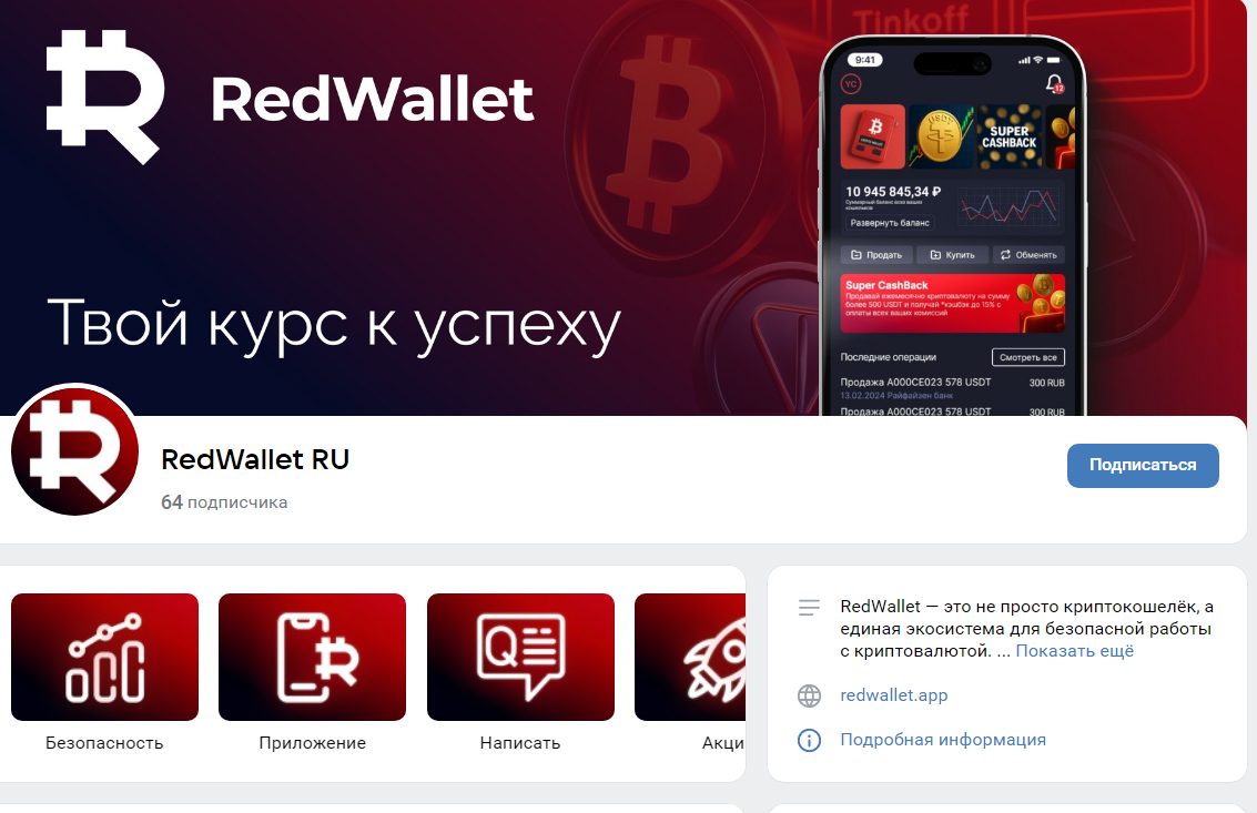 Сообщество в VK RedWallet RU функционирует с сентября 2025 года, и здесь более 60 фолловеров.