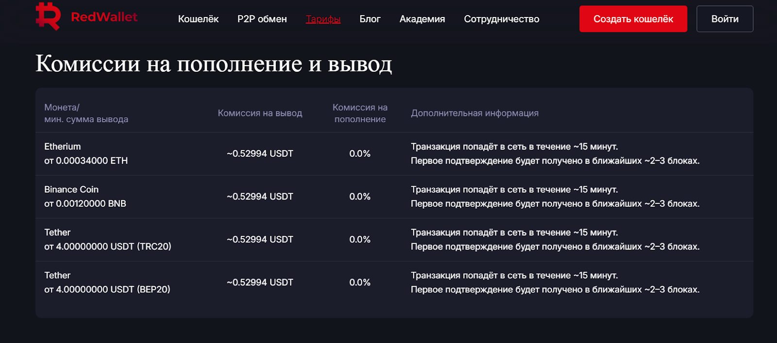 Трейдерам предлагают покупать и продавать такие валюты, как: BTC, ETH, TON и так далее. Для торговли нужно открыть соответствующую категорию и следить за актуальными предложениями, стоимостью активов. Какая минимальная сумма для торговли, не написано. Рэд Валлет позволяет проводить П2П обмены монет, хранить активы. Пополнять депозиты можно с помощью Эфириума, BNB и прочих методов. Клиентам нужно проходить проверку KYC, но детали процедуры не разглашаются.