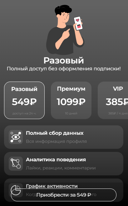 В RedFlagpwBot предусмотрены и более дорогие тарифы – за 550 и даже 1000+ рублей. Создатели же даже не придумали им полноценное описание, поэтому, кроме безлимитных проверок, такие подписки предоставляют “полный сбор данных”, “подобный анализ” и т.п. Что именно подразумевается под этим – непонятно.