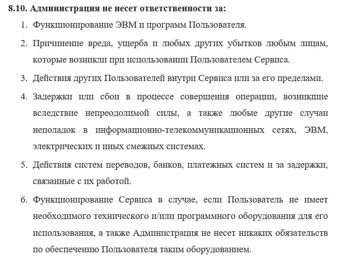 В одном из разделов нам предлагают ознакомиться с условиями использования сервиса, в котором можно найти несколько примечательных функций. Во-первых, создатели полностью снимают с себя ответственность за работоспособность проекта.