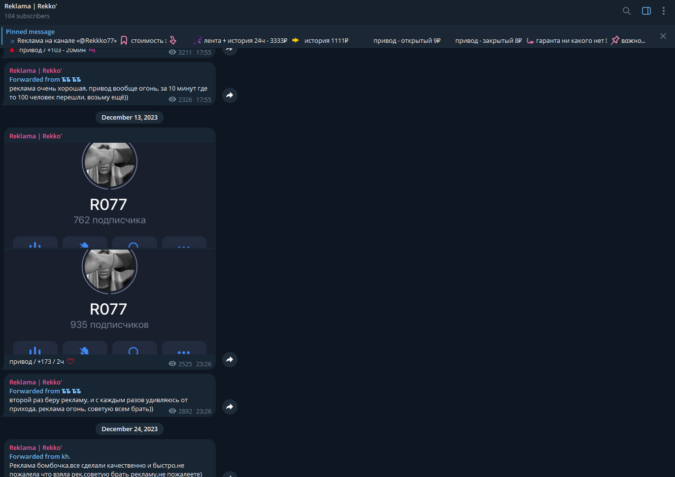 - Канал Rekko продает подписчиков в Telegram по фиксированной цене, однако официальных гарантий нет, так что результат зависит от тематики и может не оправдать вложений клиента.