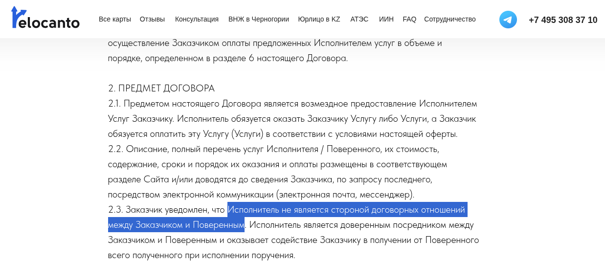 Юридическая база и скрытые условия договора на сайте Relocanto Ru