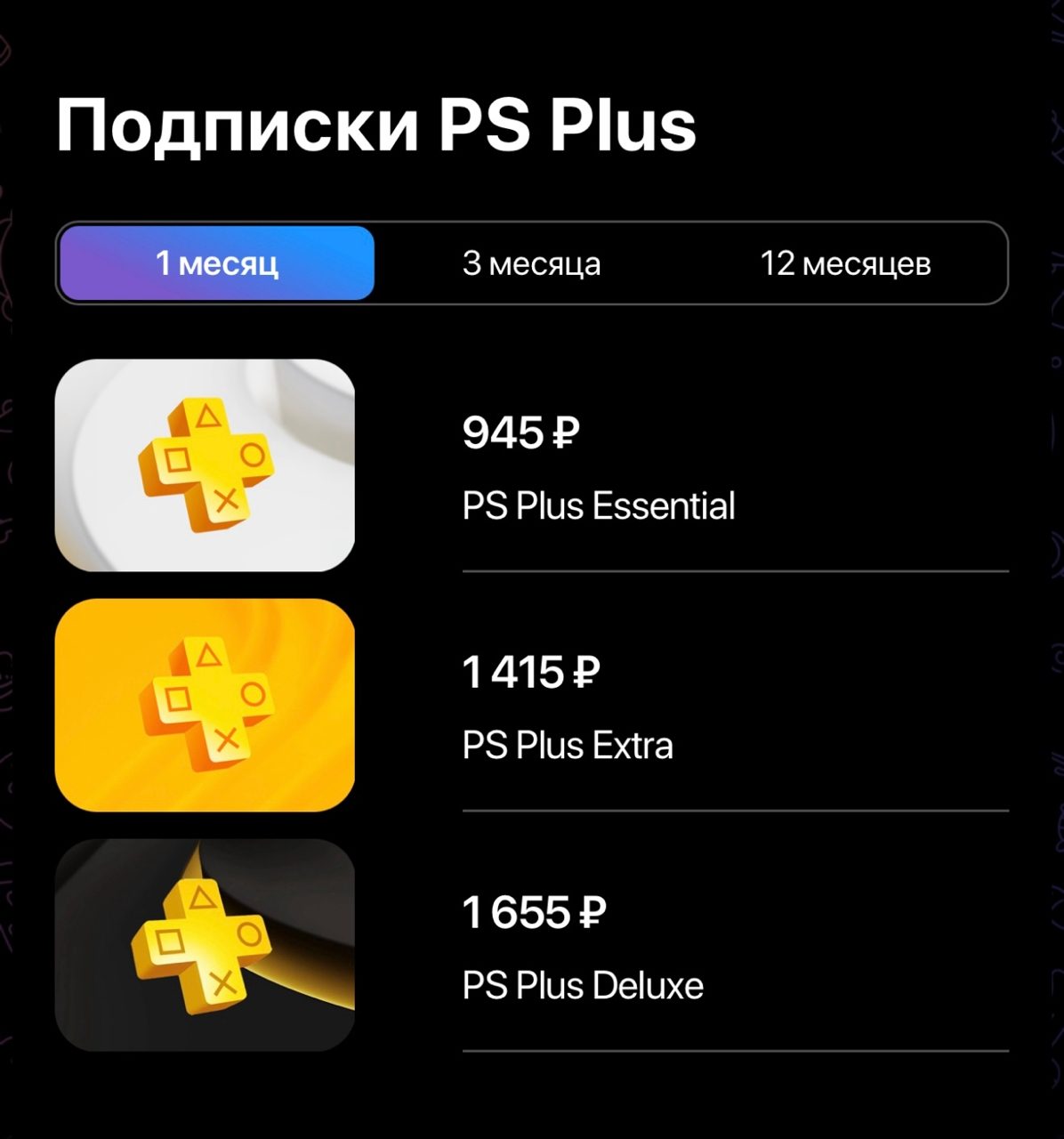 В случае с PS Plus цена зависит от длительности и наполнения, минимальная стоимость 945 рублей в месяц, максимальная за этот же период – 1655 рублей. Год по максимальному тарифу обойдется в 14 930 рублей.
