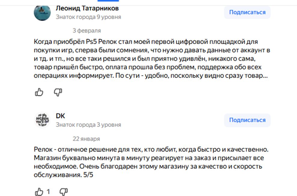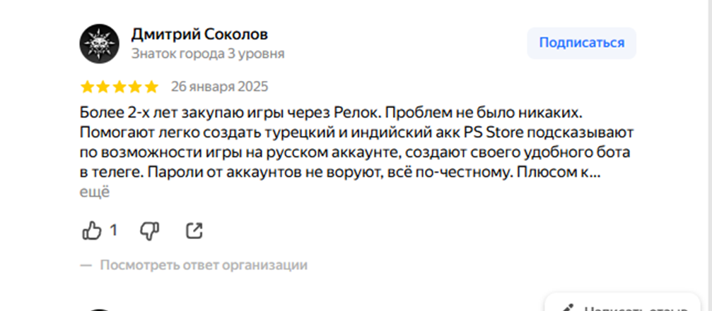 Оставьте отзыв на «Релок ps store Турция», если оплачивали подписку через этот проект.