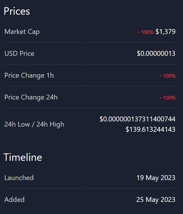 - ее криптовалюта потеряла более 99% стоимости за короткое время;