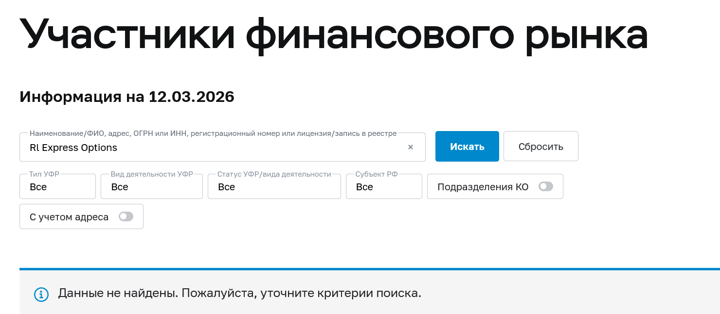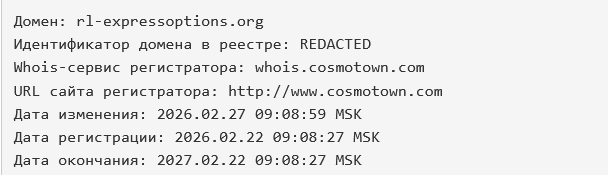 Однако проверка домена rl expressoptions org показала, что он был запущен в работу в конце февраля 2026 года.