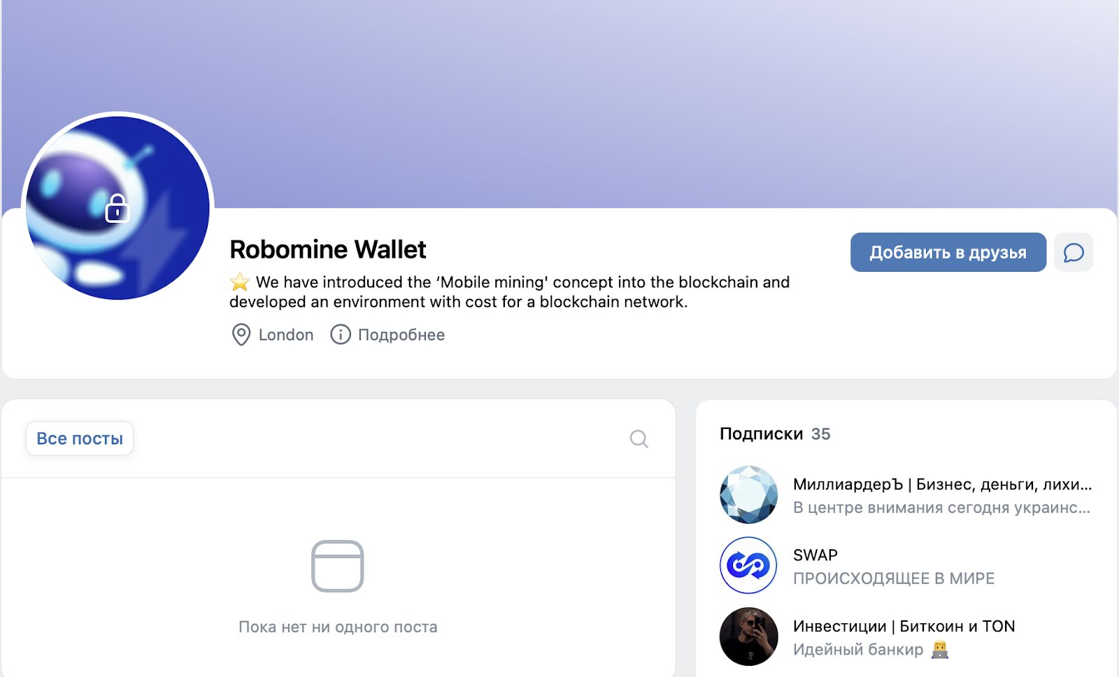 • Соцсети Robomine Wallet никто не ведет, низкая активность аудитории указывает на незаинтересованность людей в этой площадке;