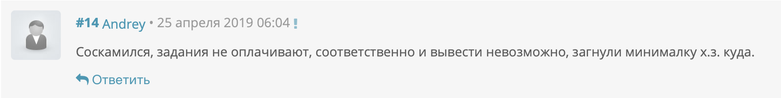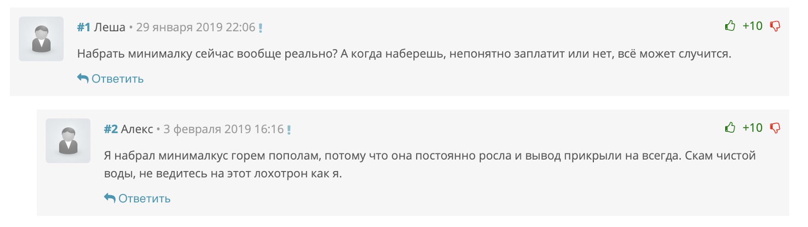 Люди писали, что задания выполнялись, токены начислялись, но вывести или продать их было невозможно. Минималка постоянно росла, выплаты задерживались или вообще отменялись.