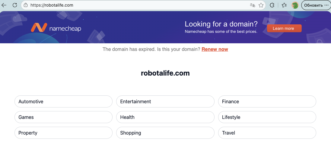 На 10 апреля 2026-го года сайт robotalife com уже недоступен. Если на него перейти, то отобразится заглушка хостера. Это означает, что проект, скорее всего, окончательно свернул деятельность.