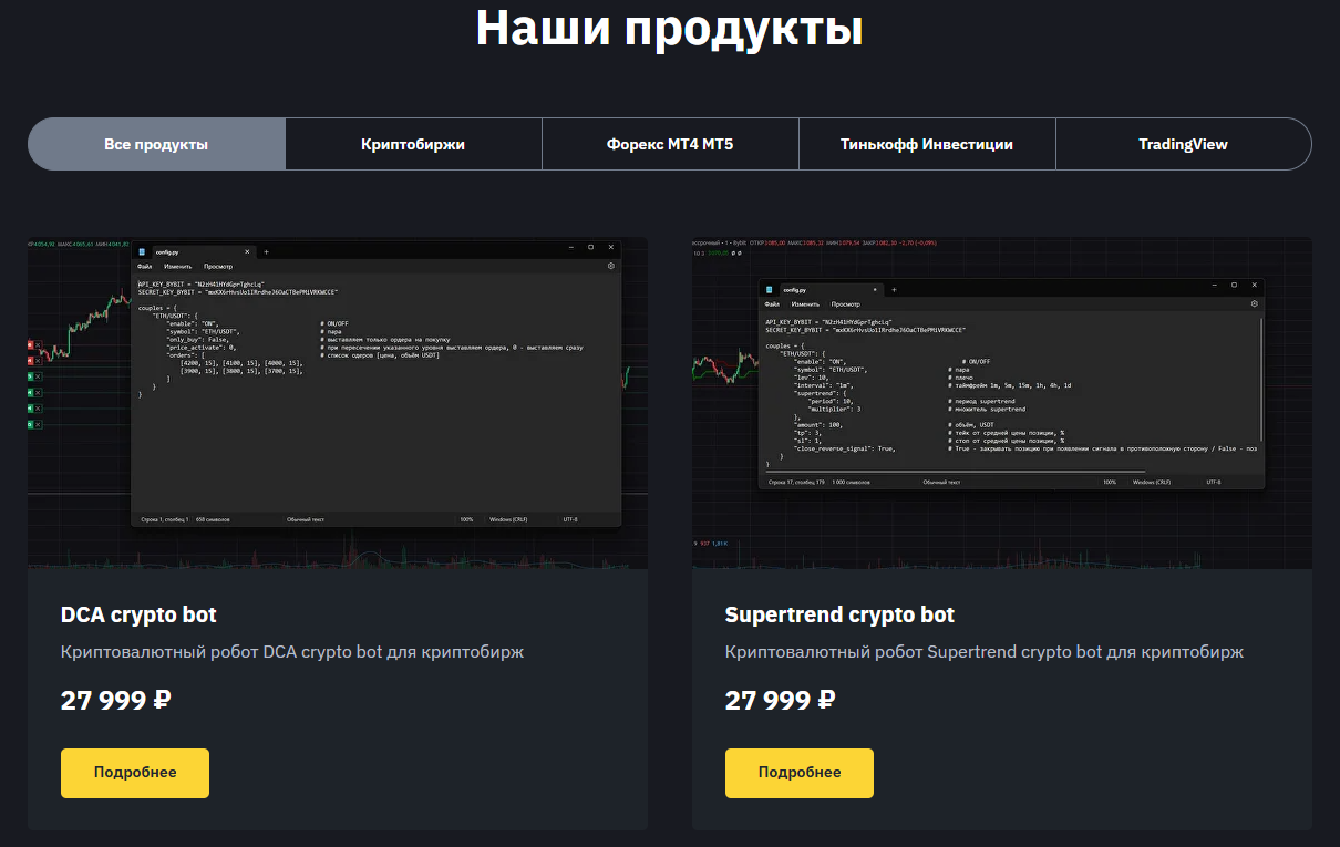 2. Наиболее массовые позиции, включая боты для криптобирж и Т-Инвестиции, предлагаются по цене 27 999 рублей.