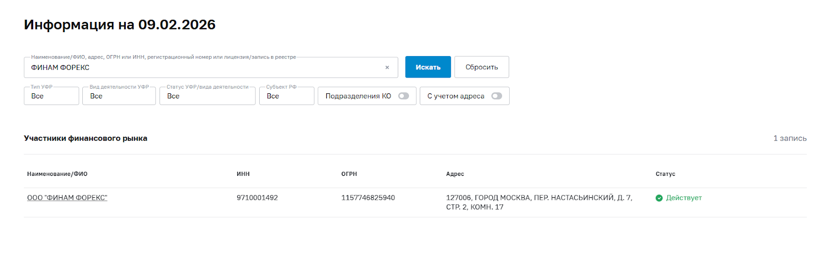 Утверждается юридическое партнерство с ООО «Финам Форекс». Такая компания, действительно, существует и зарегистрирована в реестре ЦБ РФ, но никаких убедительных фактов о ее связи с RobotsForex нет.