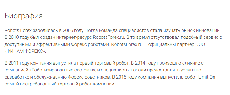 Открытые источники сообщают, что компания «РоботсФорекс»появилась на рынке в 2006 году. В 2010 году якобы был запущен сайт Robots Forex – а это в корне не соответствует официальной информации.