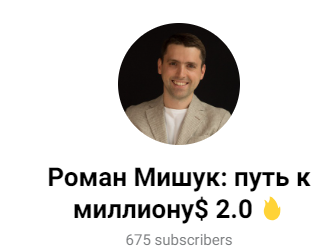 Основатель телеграмм-канала Роман Мишук утверждает, что его стратегиями, схемами и методами воспользовались 3 000 человек. Он якобы идет к заработку в $100,000 в месяц, поэтому собирает команду, вместе с которой сможет достигнуть таких целей.
