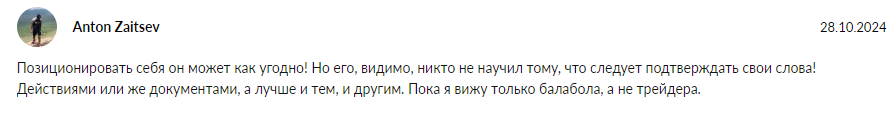 В отрицательных отзывах один из клиентов пишет, что он видит в этом человеке балабола, а не трейдера.
