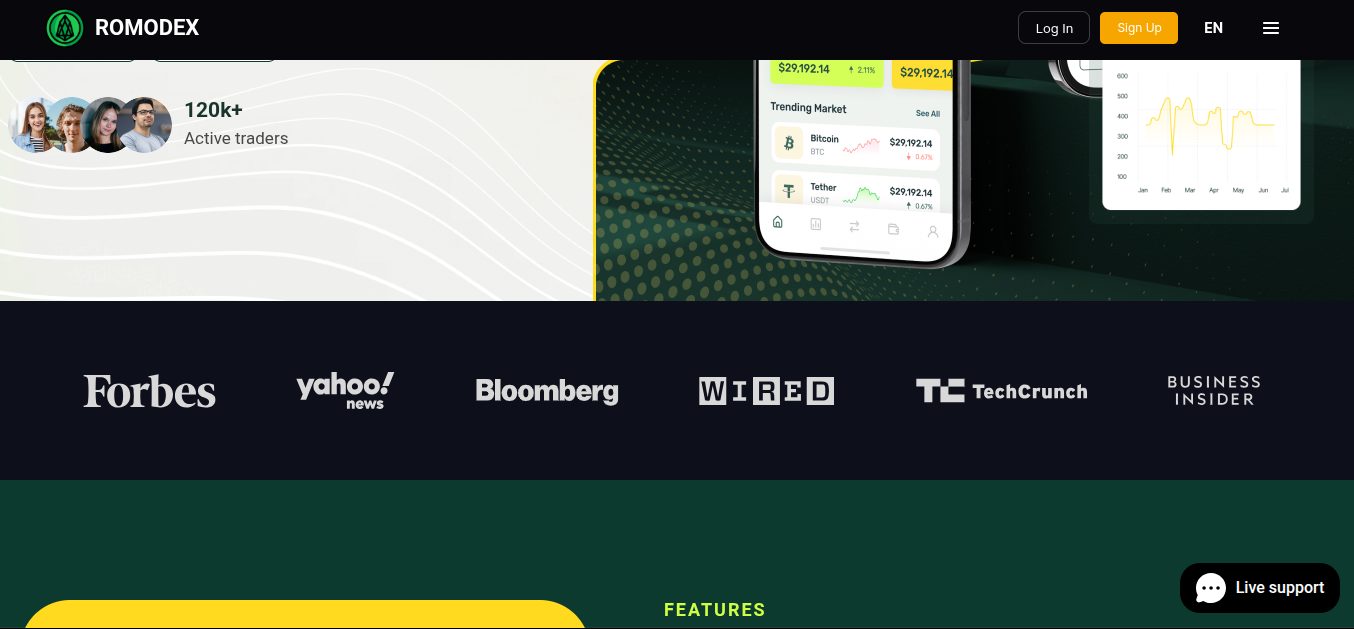 Все перечисленное выше — маркетинг, который использует криптобиржа RomoDex com. Ни одного подтверждения фактов нет, поэтому относится к приписке серьезно не стоит. В следующем блоке вы можете ознакомиться с партнерами компании. Среди них Forbes, Yahoo News, Bloomberg, Wired, TechCrunch, Business Insider.
