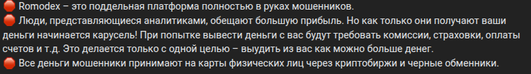 romodex биржа скам