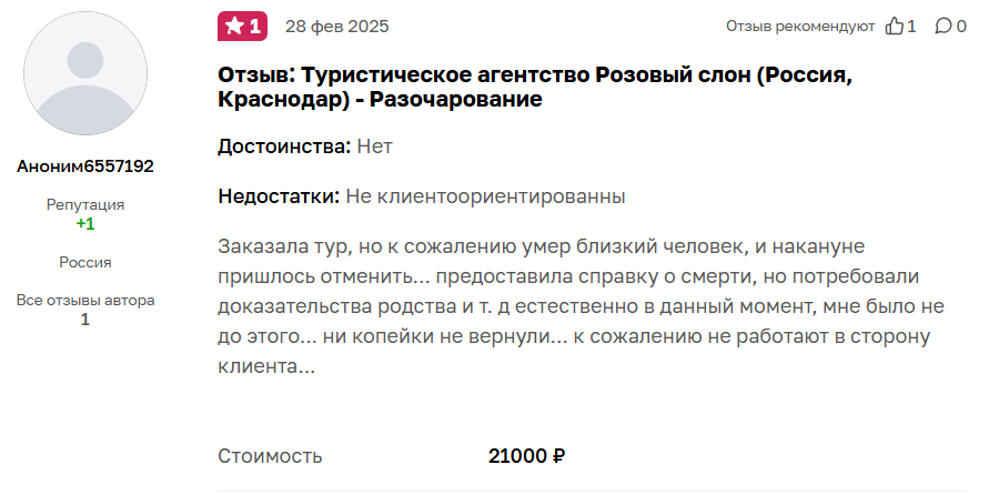 Более свежие отзывы турагентов о франшизе «Розовый Слон» на апрель 2026 на форумах не опубликованы, а вот люди, например, в 2025 году писали опять-таки негативные мнения с жалобами в адрес сервиса из-за нежелания его представителей идти навстречу клиентам.