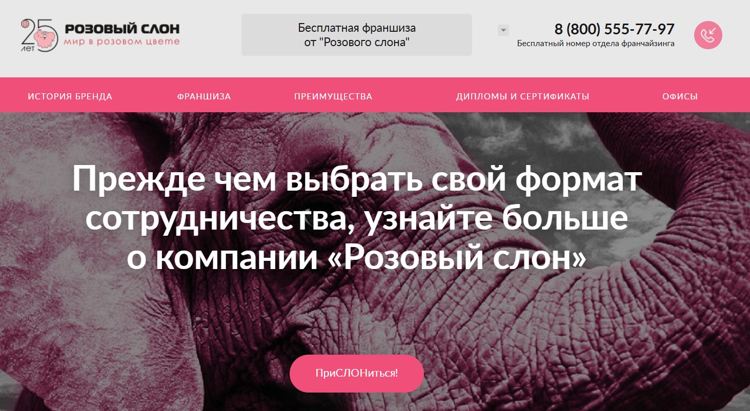 Общие сведения о компании и особенности франшизы «Розовый Слон»