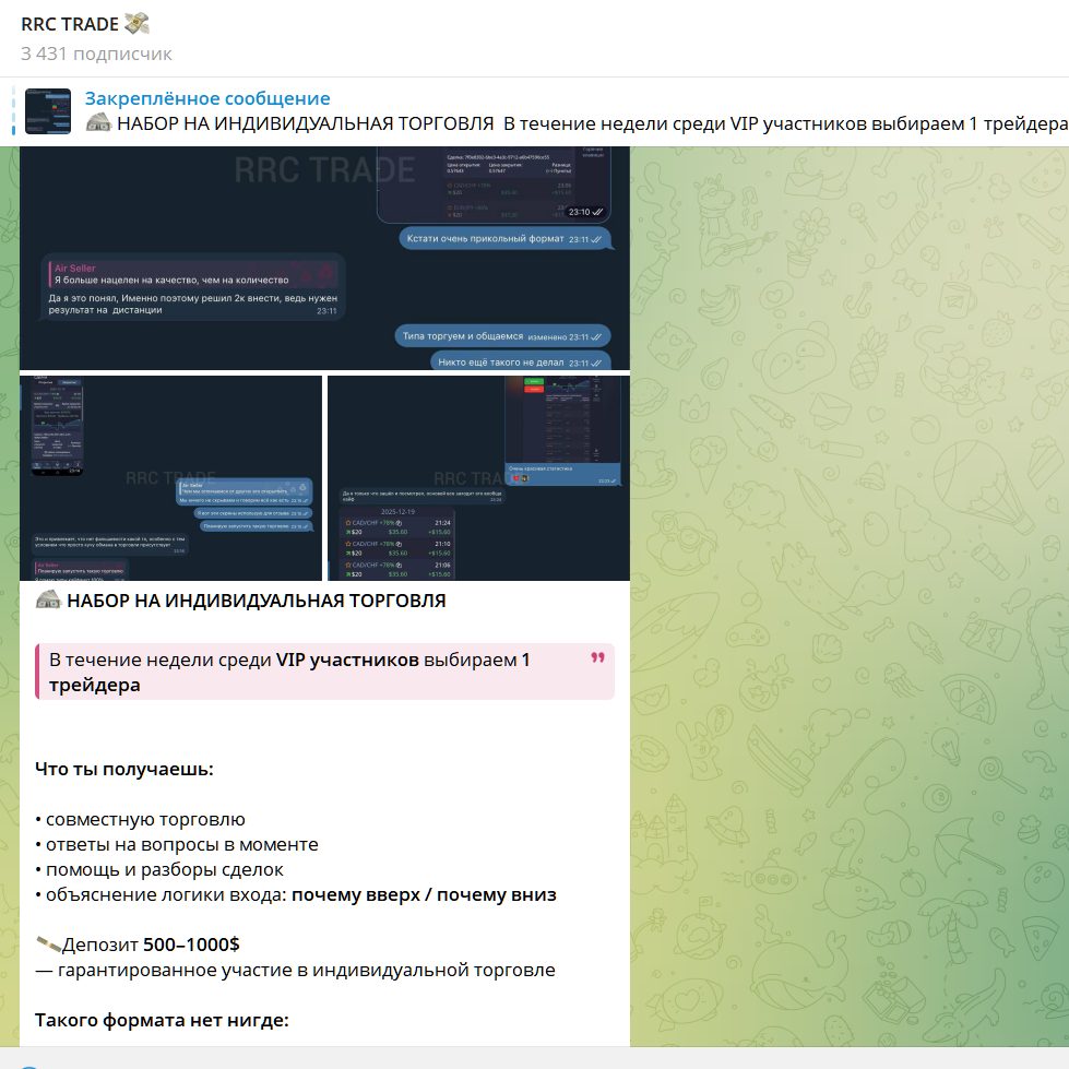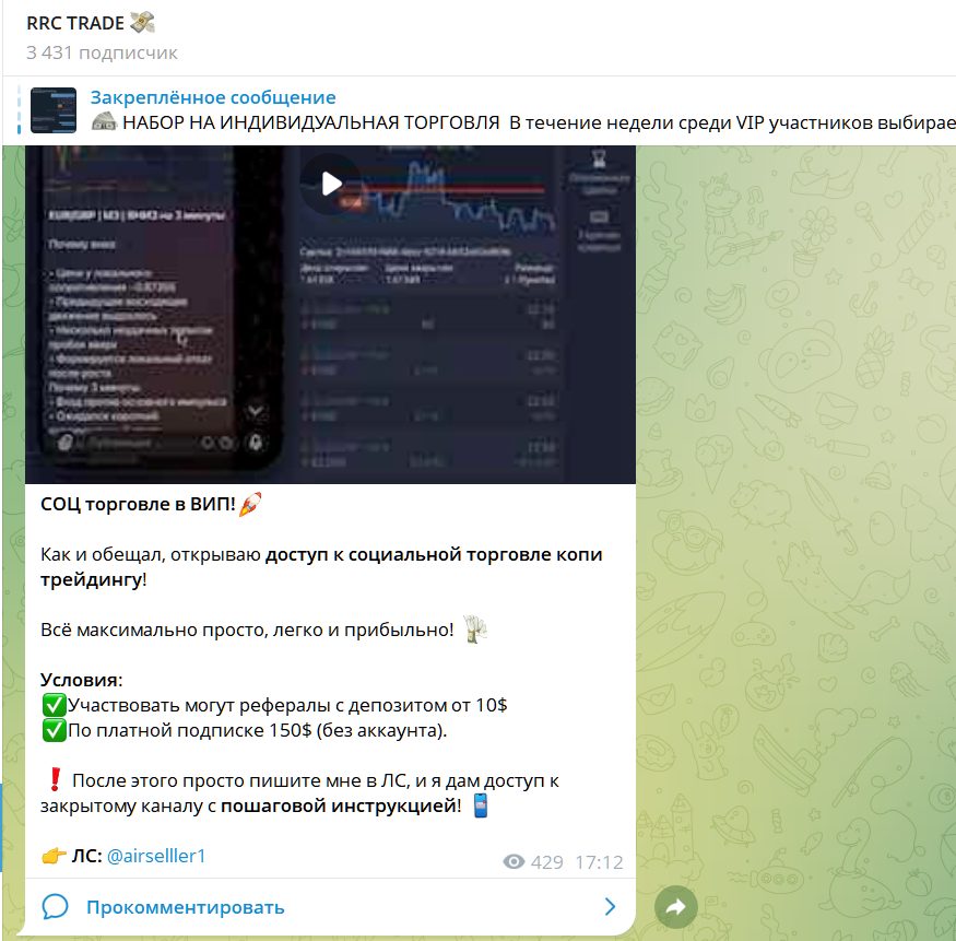 Обзор ТГ канала по копитрейдингу RRC TRADE: условия торговли, проверка на скам, отзывы