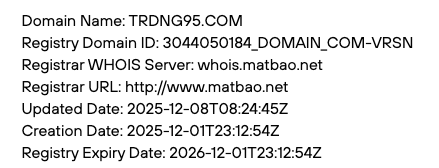 Запросив данные домена trdng95 com из WHOIS, мы обнаружили, что адрес регистратор выдал только 1 декабря 2025-го года. Над этим обзором мы работаем 25 декабря.