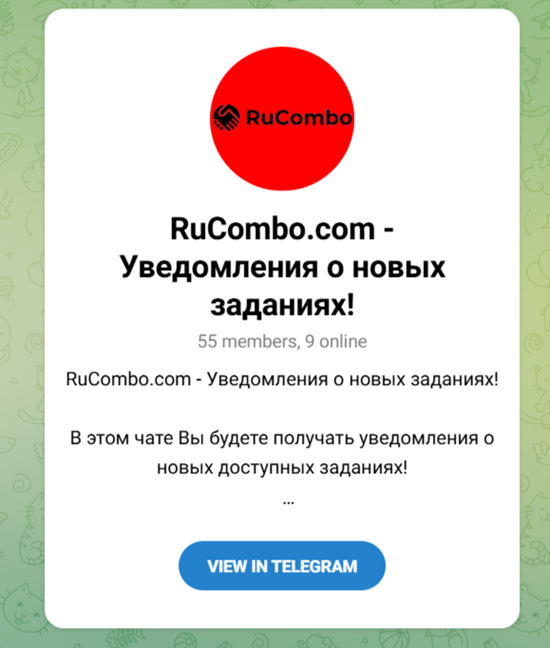 У этого сервиса есть сообщество в VK – Биржа заданий RuCombo com сервис. На данный момент на него подписано более 1600 пользователей, которые следят за новостями. Пользователи жалуются, что в последнее время площадка не работает. Также есть группа в Телеграме – RuCombo com Уведомления о новых заданиях (Rucombo Notify). К ней нужно присоединиться, чтобы быть в курсе поступающих заказов.