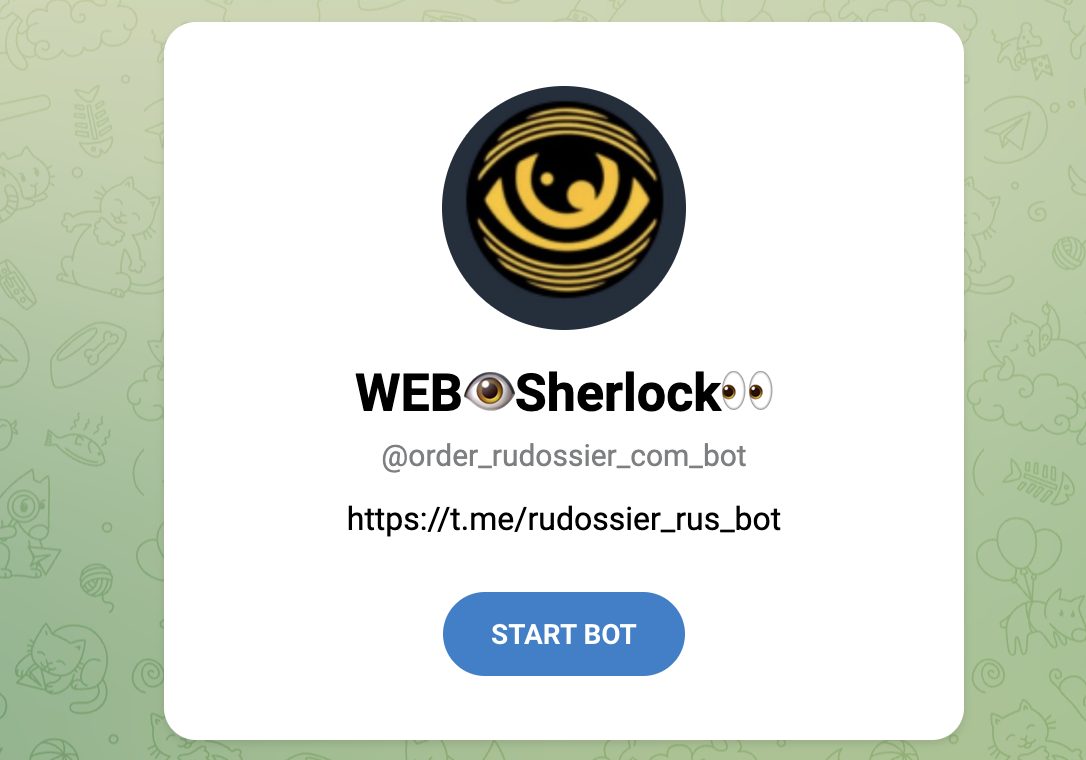 Продвижение Rudossier строится вокруг Телеграм экосистемы. Используются боты, упоминания в постах и переходы между аккаунтами, что создает замкнутую систему без выхода на внешние площадки. Это типичная модель для проектов, которые не заинтересованы в публичной репутации на независимых платформах. Также сам сервис не дает достаточного уровня прозрачности внутри своей воронки.
