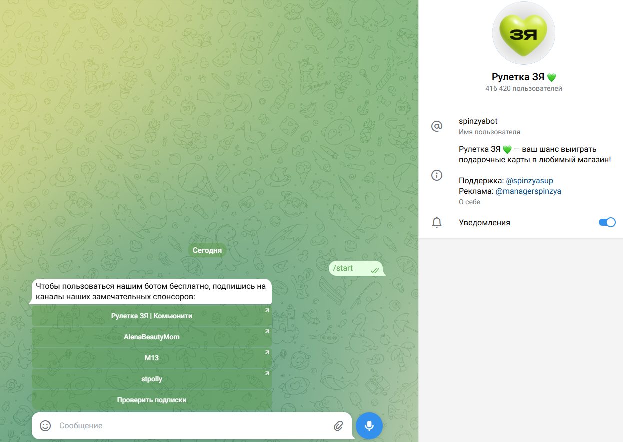 Обзор телеграм бота SpinzyaBot: отзывы клиентов, как работает Бьюти Рулетка ЗЯ