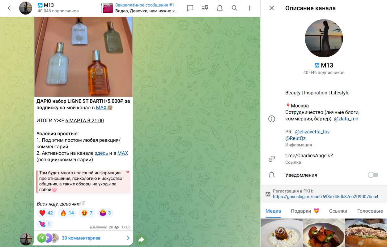 Схема обмана типичная, пользователям предлагают якобы выигранный приз, например дорогую косметику. Однако для получения требуется оплатить доставку/небольшую комиссию или налог. После перевода владельцы перестают выходить на связь и отправляют людей в черный список. У них в каналах якобы открыты комментарии, но стоит фильтрующий бот, который удаляет все сообщения это новых подписчиков.