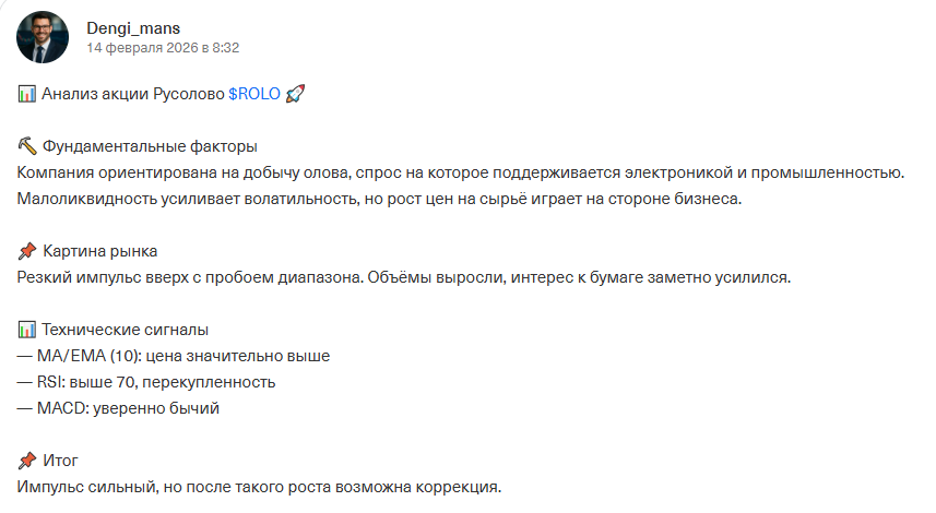 Акции Русолово — один из спекулятивных активов во 2 и 3 эшелонах ценных бумаг России. Бумаги активно росли в 2023 и 2024 годах, а в 2026 уже вернулись к своим адекватным ценам. Сотни инвесторов и спекулянтов потеряли свои деньги.