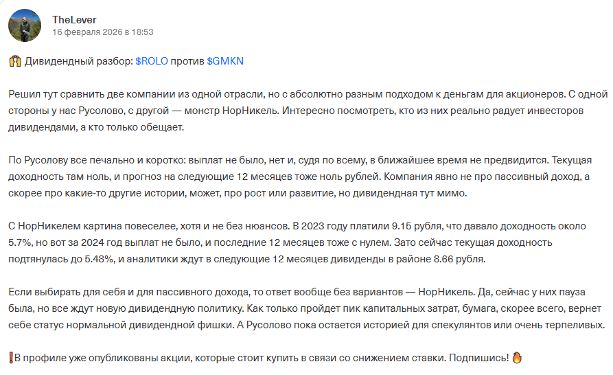 Русолово не будет приносить дивиденды в ближайшие годы. Вообще никакие, даже самые минимальные. Компания находится в тотальных убытках при высокой кредитной ставке. Они живут только за счет вливания со стороны Селигдар.