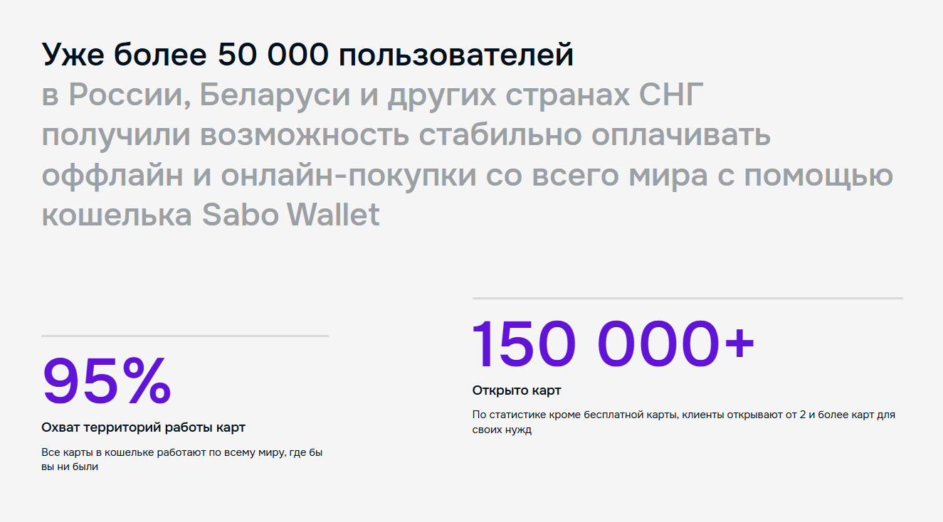 Утверждается, что на январь 2026 года карты оформили уже более 50 000 человек по всему СНГ, но верифицированной статистики на сайте SaboWallet ru нет.