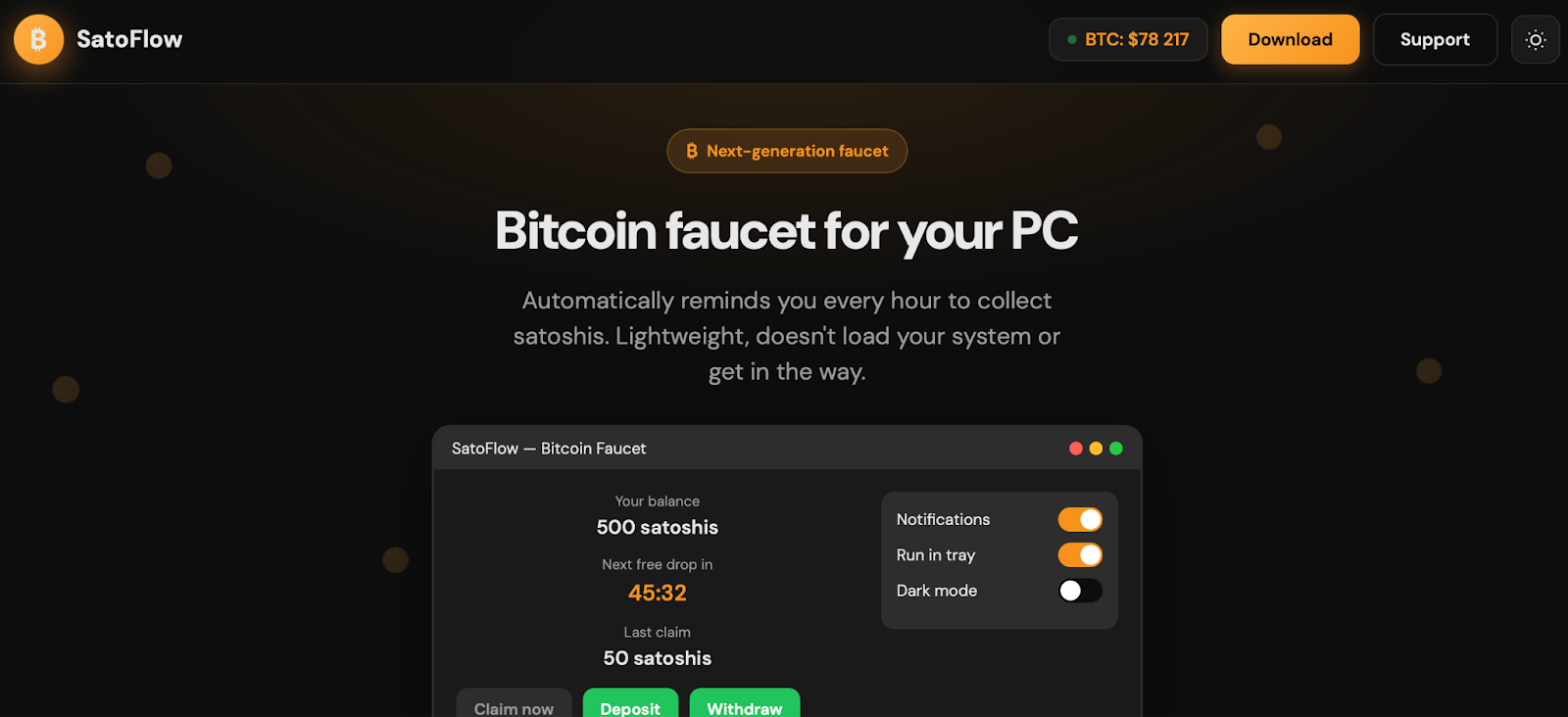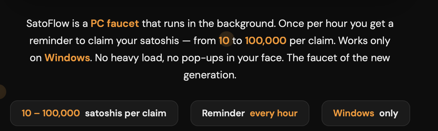 Satoflow функционирует только в пределах очень простенького веб-сайта, а также программы. Последняя доступна для скачивания, но отказывается запускаться у большинства пользователей.