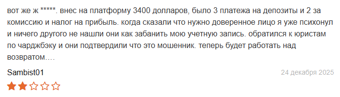 Еще один человек пишет: внес деньги после обещаний выйти в плюс. Блок получил сразу. Постоянные истории про новые платежи. Люди ни разу не смогли вывести деньги нормально. Каждый раз новая отмазка. Обман на обмане.