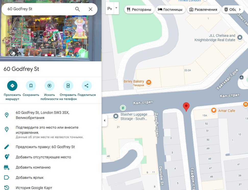 - Фейковый адрес офиса в Лондоне.