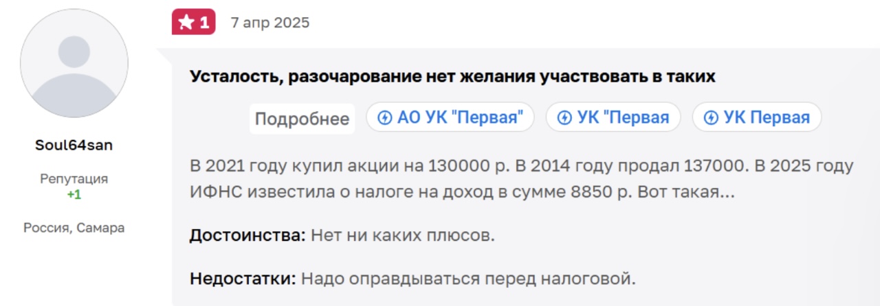 Если вы вкладывали свои средства в УК Сбер Первая Sbmm, знаете, как получить выплату быстро и в полном объеме или располагаете другой полезной информацией, напишите свой отзыв под этим обзором.
