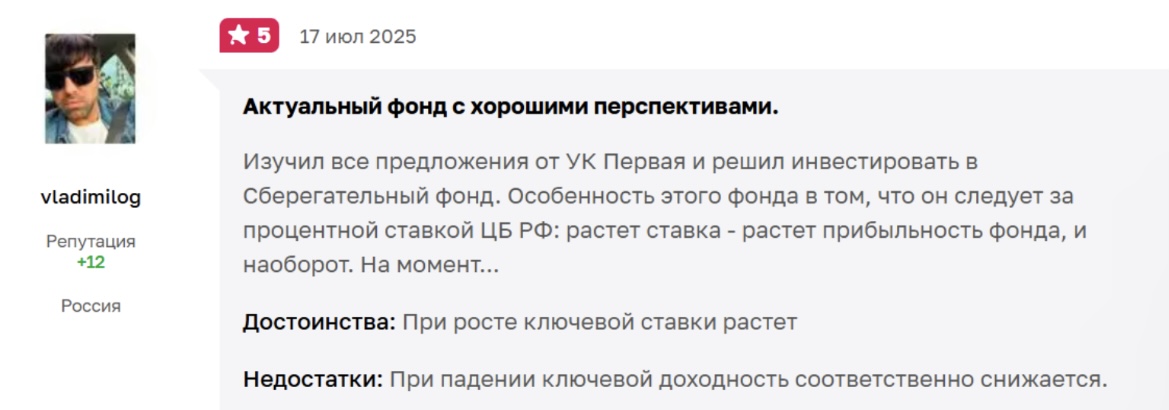 Отзывы клиентов на форумах и профильных сайтах по программе Первая от фонда ликвидности Сбербанка Sbmm Сберегательный самые разные — от 5 звезд до самых низов.