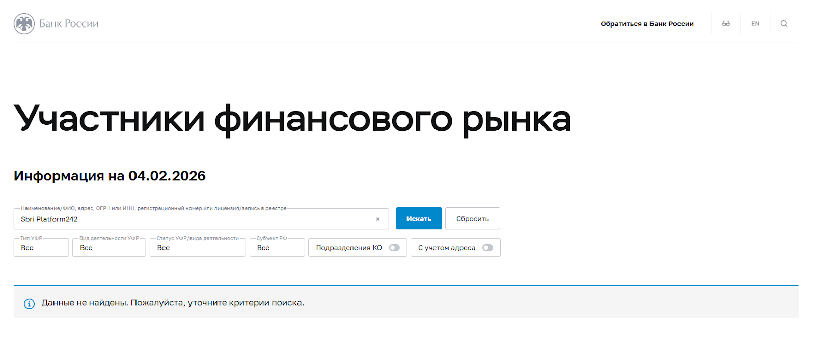 Репутация брокера на февраль 2026 года негативная, несмотря на его непродолжительное время пребывания на рынке. Пользователи уверяют, что «Сбри Платформ 242» занимается обманом, и на сайте можно только потерять деньги.