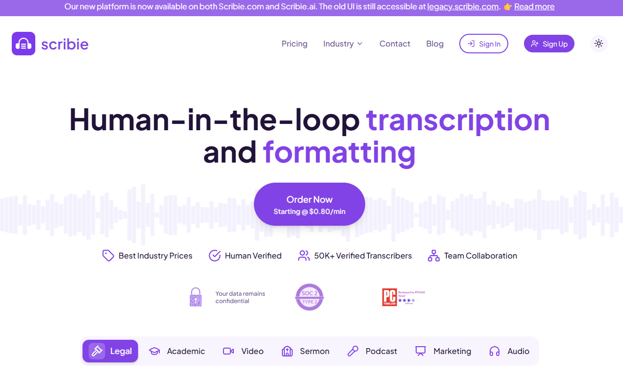 Сайт scribie com – англоязычный сервис. На сайте также есть упоминание, что платформа дополнительно работает на домене scribie ai.