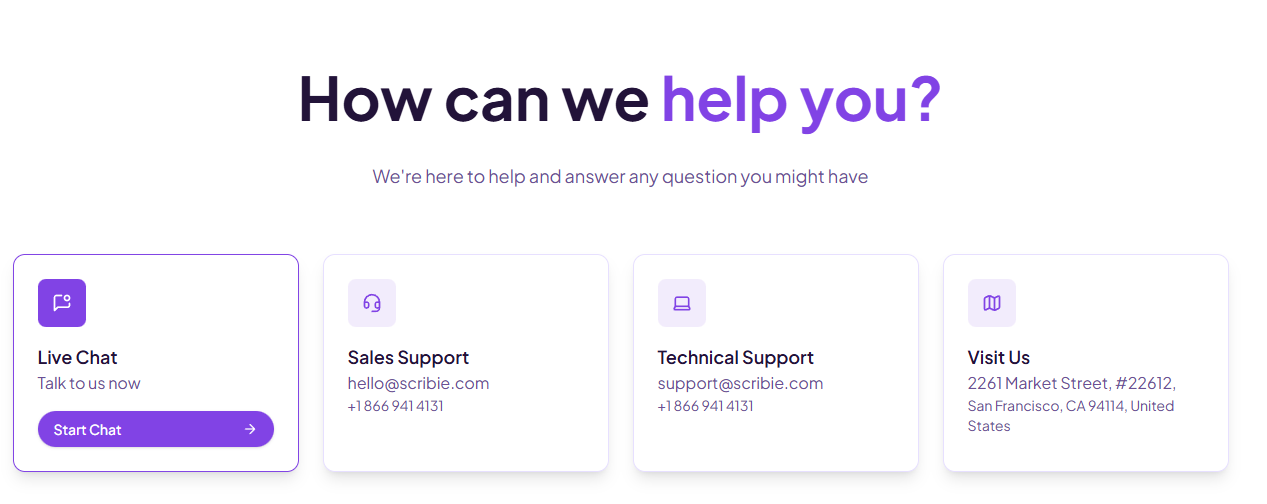 На платформе указано, что за проектом стоит компания Scribie Technologies, Inc. Отмеченные на сайте контактные данные, по всей видимости, рабочие.