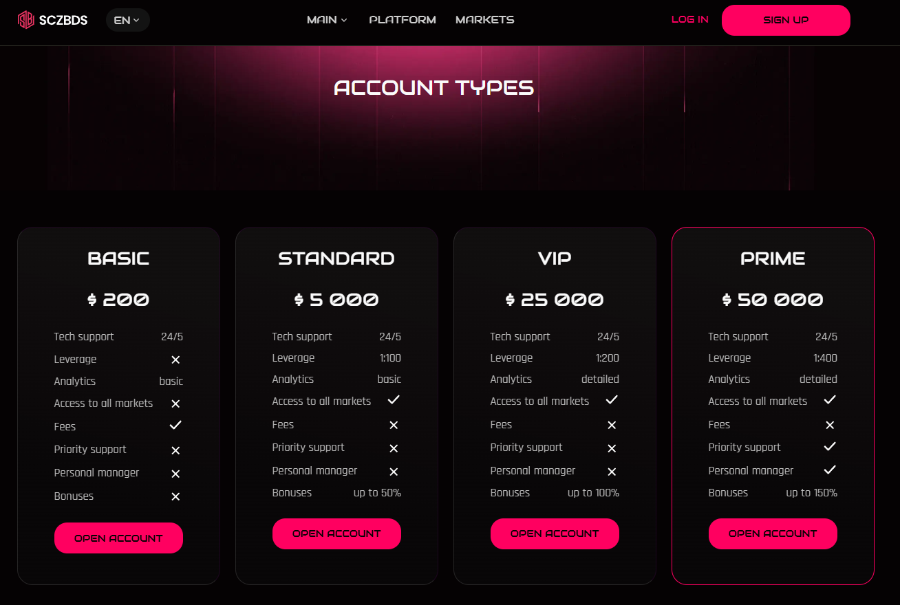 Sczbds com – сайт брокера, который предлагает торговать на рынках форекс, крипто активами, индексами и металлами. Создатели в качестве преимуществ заявляют о низких комиссиях, конкурентоспособных спредах, надежной репутации и наличии справочных материалов. Мы изучим информацию о компании, юридический статус, условия, а также отзывы в сети.